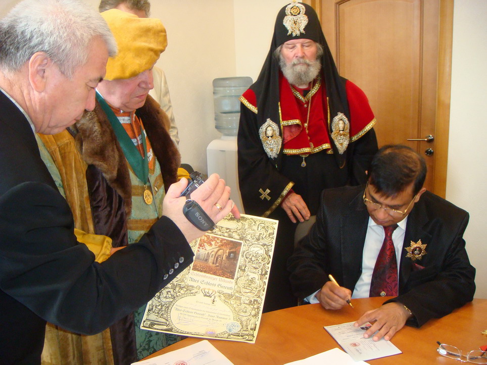 On August 20, 2010 in St. Petersburg, Professor Shanti Jayasekara Pushpa Kumara was awarded the family title of Count von Gereuth. Prince George Friedrich Ferdinand, a special guest, was the one who awarded Professor Shanti Jayasekara the honorary title of Count. In addition, Professor Shanti Jayasekara signed a deed of ownership of a part of the castle, and he obtained the passport of a member of the Royal Society, which endows him with privileges at the international level.